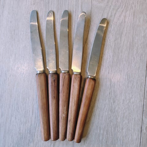 De er 19 cm lange. 6 stk med teak skaft. Selges for 20kr pr stk. Eller alle for 80kr.