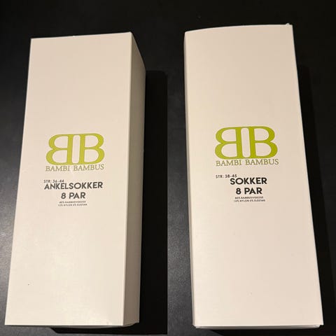 6 par uåpnede svarte kortsokker fra Bambusa selges, kan sendes