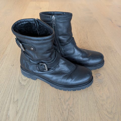 Varme og gode. Ekte pels innvendig. Skoene er i ekte sort skinn,