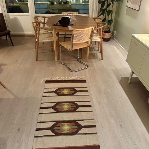 Selges da det ikke passet inn der vi skulle ha det. Kun brukt en kort periode. Veldig mykt og nydelig "mønster". Fra HM Home.