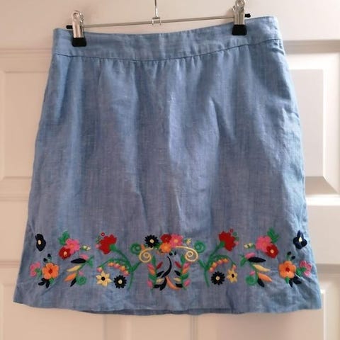 Et nydelig mønstret skjørt i sjøgrønn turkis lilla brun offwhite som gir mange muligheter for fargekombinasjoner. 😊Jeg skulle gjerne brukt dette nydelige skjørtet selv men dessverre er det feil størrelse. Skjørtet er nesten ubrukt men jeg har håndvasket det nå forsiktig og strøket det slik at det er klart for bruk. 😊