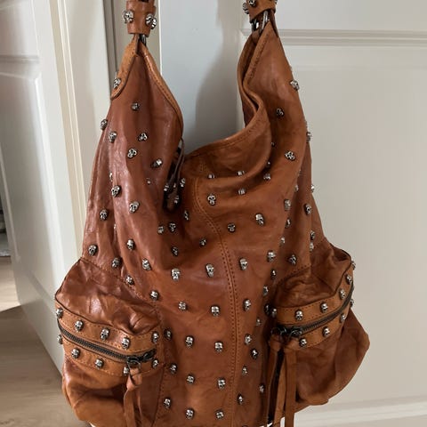 Glidelåsen har gått litt i stykker, må syes igjen et hull. Slitt i skinnet, kan trenge noe behandling
