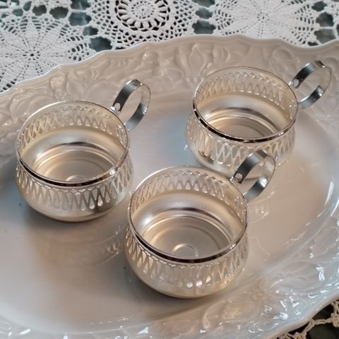 Kaffekopper i glass med holder. 6 stk fra Schott Mainz i Tyskland og 5 stk uten merke. Fra ca 1960.