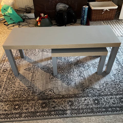 Det er et par merker i bordplata, men vi har brukt det frem til nå.