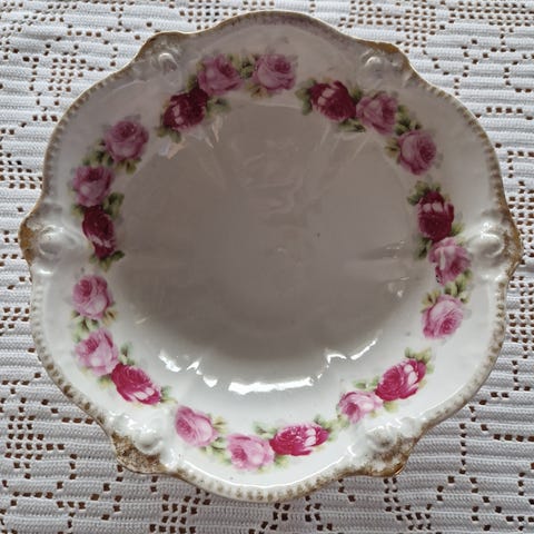 Serveringsfat og mugge med oldemorsroser selges. Billigst frakt med postnord til 69 kr.