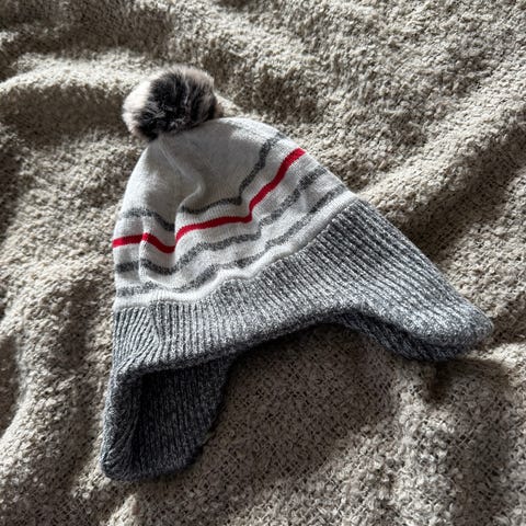 Søt stripete rosa og lilla bomullslue i str. 50 fra Tom & Trine - søte ører 💜🩷 100% økologisk bomull. Hovedfargen er lilla. Den er godt brukt, men har masse bruk igjen :) Kan ikke finne noen flekker eller hull, kun vanlig bruksslitasje ☺️