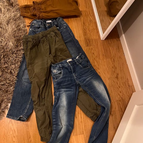 Pene fin bukser til gutt. Beige str 134, cubus. Blå str 140, Begge med justerbart strikk i livet. Veldig pene bukser som passer fint med både skjorte og genser til. Brukt noen få ganger bare, da de ikke falt i smak her. ( en runde med strykejernet så blir de knall fine👌😊)