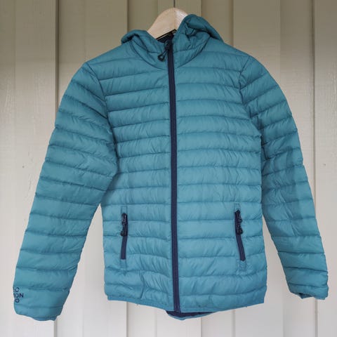 God vinterjakke med snølås. Et lite typisk fall slite merke på albuen ellers i orden. Fin til skole og til lek i snøen.