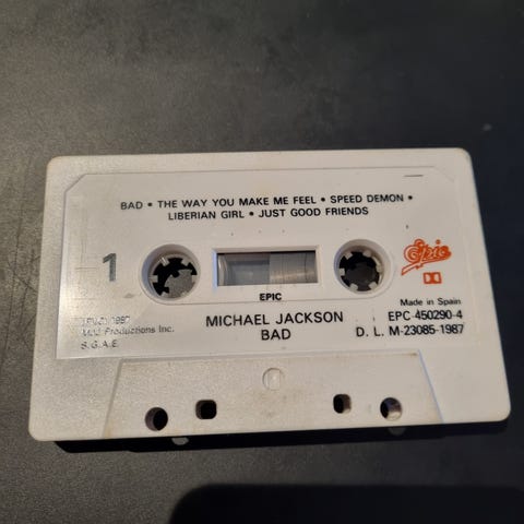 Her har vi et fint eksemplar av Michael Jacksons Thriller 8 spors kassett. Sjelden kassett.