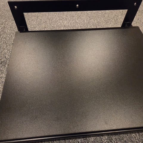 Ekstrem Monoblokk stand, svært tung og stødig. Noen bruksmerker finnes på den ene siden, se bilder. Det er noe merker etter føtter fra tunge poweramper på topplate. Mål er B 66 x D 62,5 x H 21