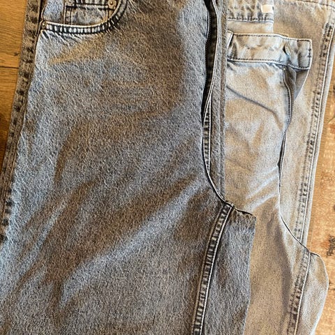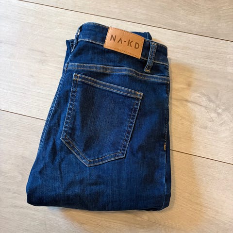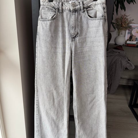 Lysegrå jeans med lavt liv fra NA-KD i størrelse 36 selges.