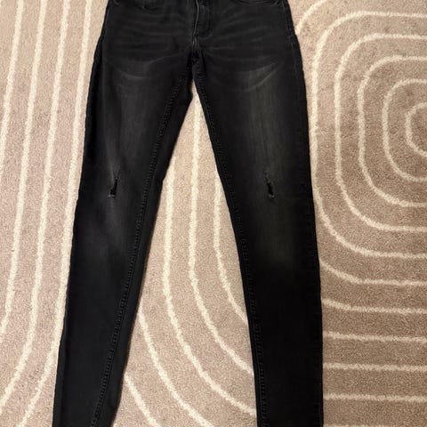 Svarte «washed» motorsykkeljeans med kevlar og beskyttelse ved knærne.