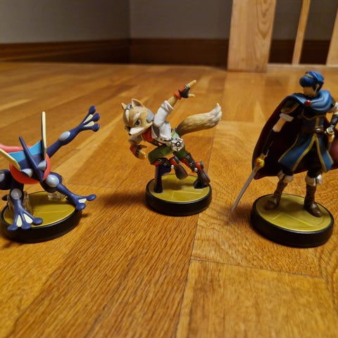 Selger en Captain Falcon Amiibo fra Super Smash Bros 4 tiden.