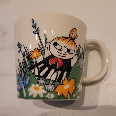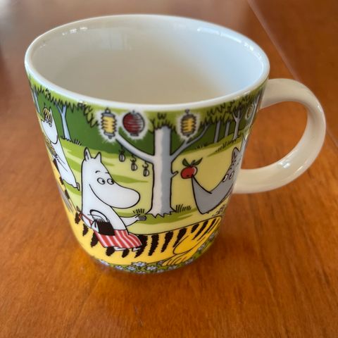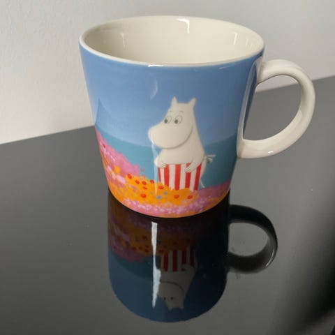 Den siste dragen" Mummikrus er en av fire unike krus som ble lansert til ære for den nye Moominvalley animasjonsserien i 2019. Den siste dragen er det mest verdifulle animasjonskruset, muligens på grunn av sin mindre produksjonsbatch eller fengslende illustrasjon. Krusets bunn har et "MOOMINVALLEY" stempel, som sikrer dens autentisitet og tilkobling til 3D-animasjonsserien.Kruseillustrasjonen fokuserer på den første sesongens tredje episode, "Den siste dragen". På sin grønne base ser vi Snusmumrikken og Mummitrollet intenst fiske, som reflekterer lysene og skyggene i Gutsy Animations' nye animasjoner som er tro mot Tove Janssons originale verk.