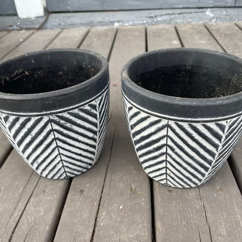 Stilfulle og moderne dekorpotter, potteskjulere med innerpotter. 3 stk. God stand, pent brukt.