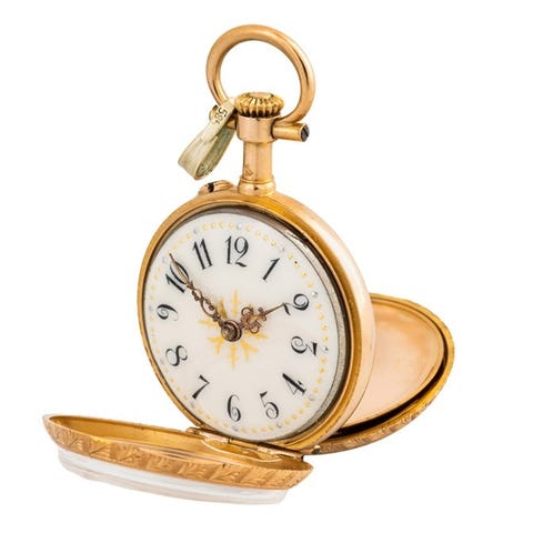 Er blitt laget av gullsmed på bestilling for kr 30 000, etter at en lignende eldre klokke ble stjålet og ikke lenger var mulig å kjøpe i butikk.