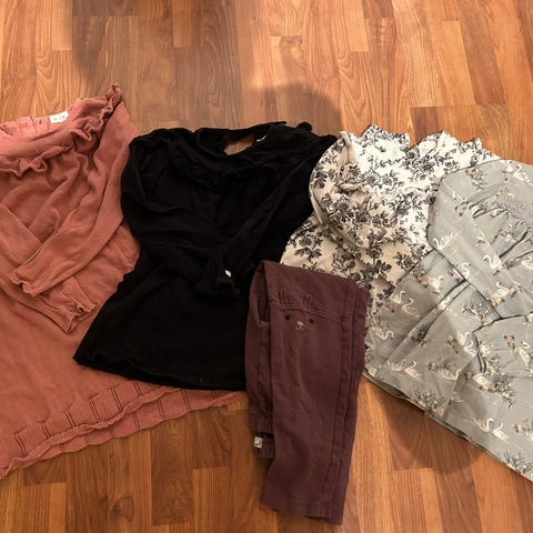 Klespakke, jente str. 122/128 (nr 46), selges samlet for kr 70,-.