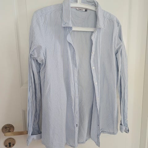 Hvit, svart og lilla skjorte (litt fuzzy), str. M. I veldig fin stand og selges med et tungt hjerte.