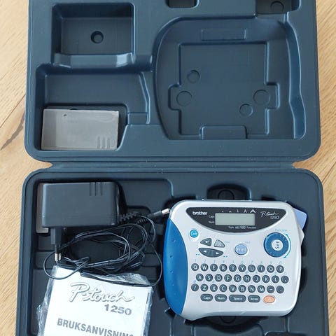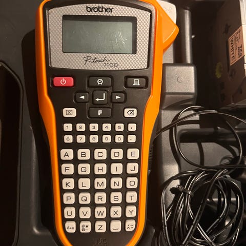 Vellfungerende merkemaskin med merkebånd, går på batteri og strøm.