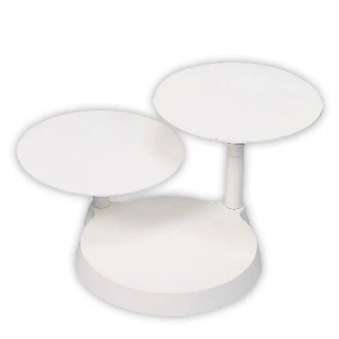 Kakefatene på stativet er 40, 30 og 20 cm.