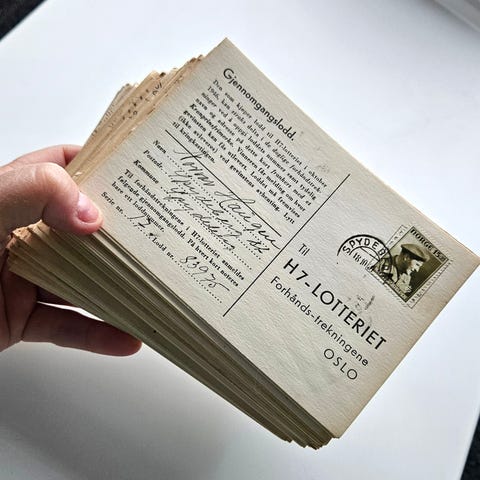 Kan sendes på kjøperens regning mot forhåndsbetaling.