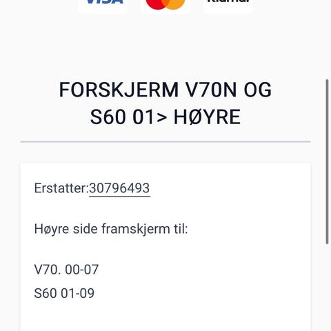 Airbagsensor fra 2003 modell Volvo S60 selges.