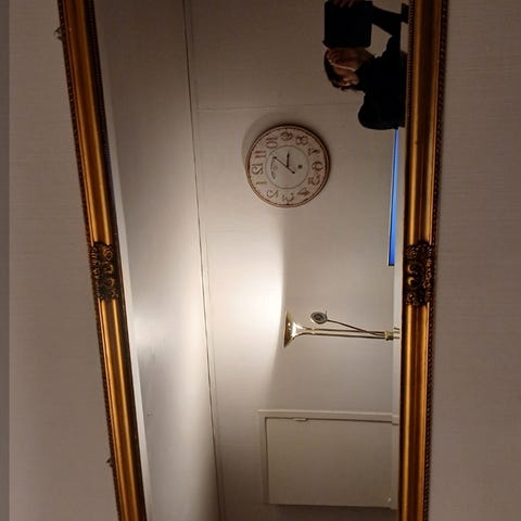 Antikk speil i tre som har fått seg en make over. Krakelering noen steder i speilflaten. Fasettslipt. Må hentes.