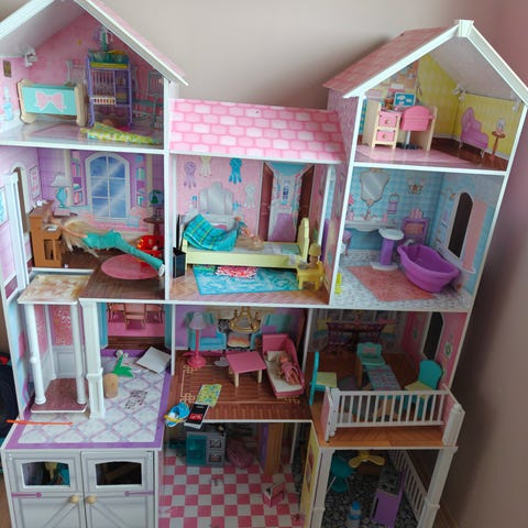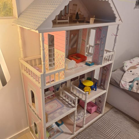 Følger med noen møbler som passer godt for dukker med garasjen men følger ikke med bil.