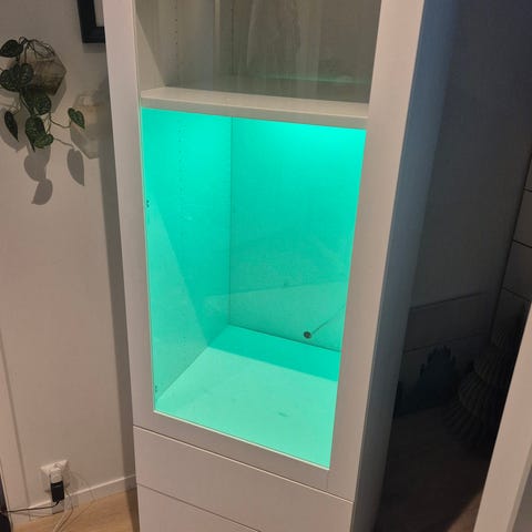 Glas vitrine skap med lys inni selges for 2500kr, veldig pent brukt