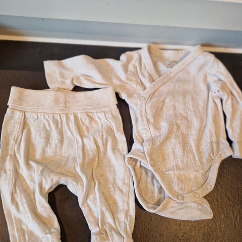 Pent brukt myk body i str. 56 fra Name It, og stretchy strømpebukse av ullmix i str. 50. Nypris ca. 450 kr totalt