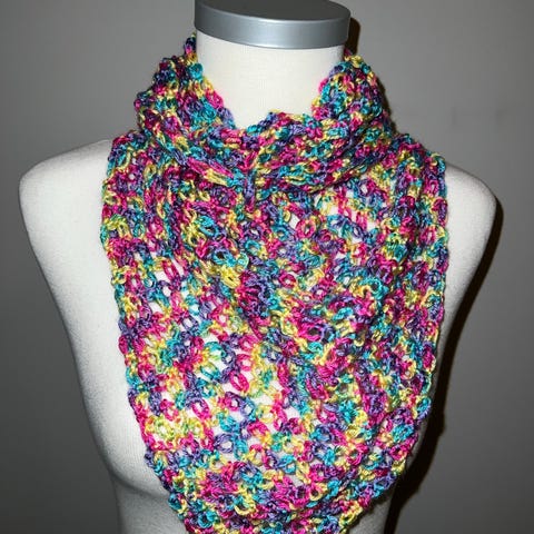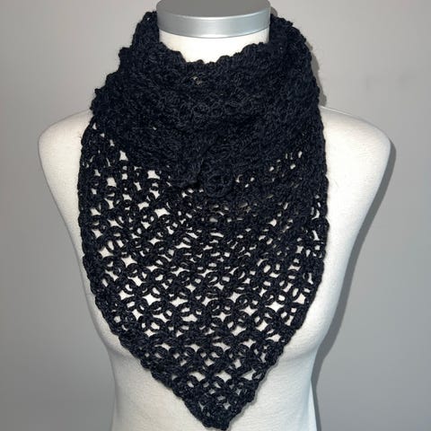 Sjal, skjerf heklet i englemasker, kjærlighetsknuter selges. Har heklede sjal i mange ulike farger. Kan sendes mot at kjøper betaler porto.
