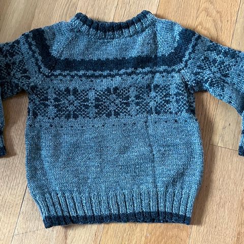 Nyvasket og fin strikkegenser til barn, vil si den passer ca 3-5 år.