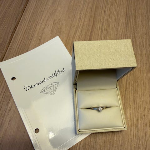 Kommer med ringens originale eske samt ring-diamantbevis/sertifikat originalt fra Gullsmeden.