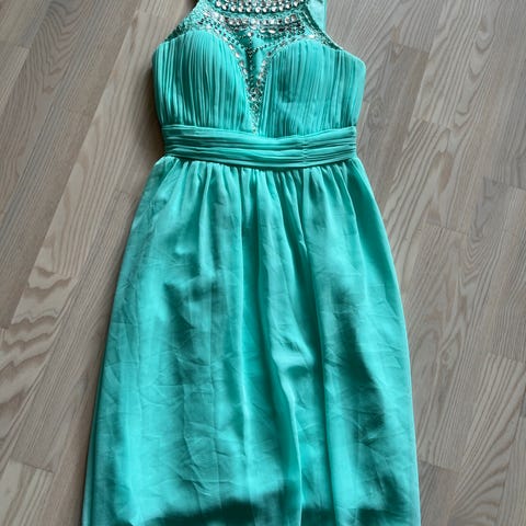 Knapt brukt kort festkjole fra Floyd str. 10 (tilsvarer S) med skjerf selges kr. 200,-