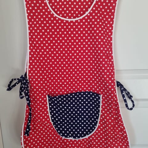 Retro 60-talls forkle. Bredde oppe ca 38, høyde ca 49. I god stand. Knytes i ryggen.