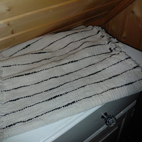 Løper med blå kant i midten gult og lysegrå overgang. 100% cotton. Designed i Sverige. Kan vaskes ved 40 grader.
