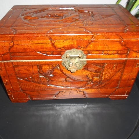 Flott Kinesisk Smykkeskrin med speil,,,høyde ca 21 cm..bredde ca 23,5cm....dybde ca 24cm....