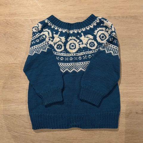 Blå, med hvite traktorer på
