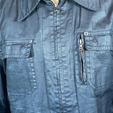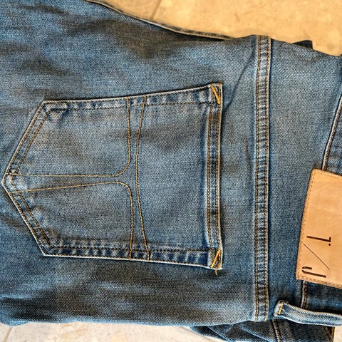 Med bruksmerker menes noe slitasje på stoffet men ikke noe som er direkte synlig da buksen er laget slik.