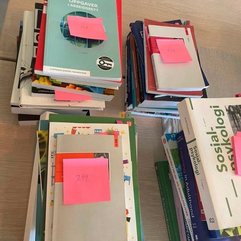 Ingen fastsatt pris på bøkene. Noen bøker er litt mer slitte og har mer markering enn andre. Bare ta kontakt så blir vi enige om pris!😊