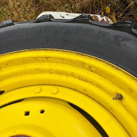Sprøytehjul 270/95 R44 på helsveist felg. Noen år gamle men i god stand. Helsveist felg. Stått på JD2040.