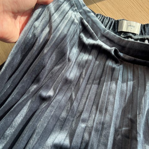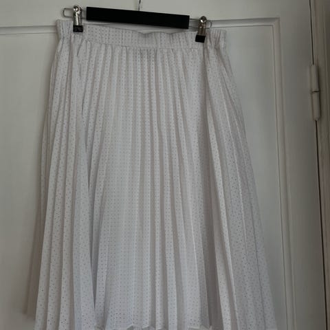 Fint plisseskjørt med for. Lengde 64cm, livvidde 84
