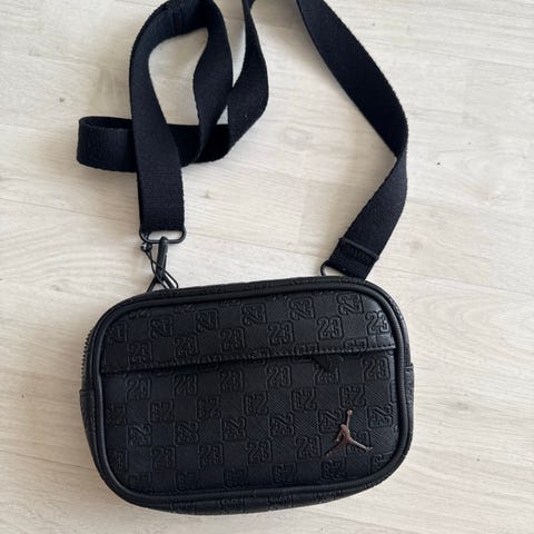 Liten skulderveske fra Nike. Pent brukt en liten periode av ungdommen i huset. Reimen kan justeres til ønsket lengde.