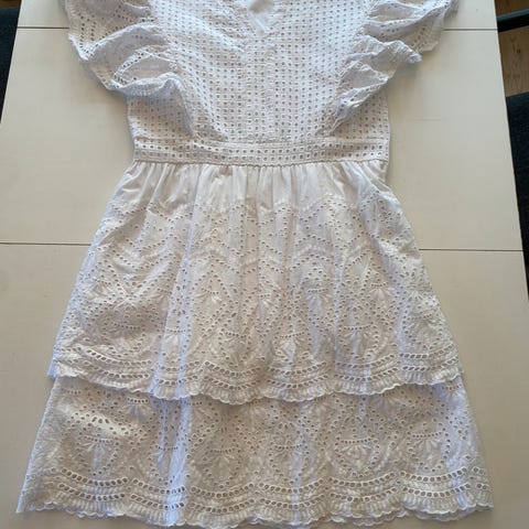 Nydelig havblå/sjøgrønn farge, kommer ikke helt frem på bildene. Str L fra Vero moda. Lappen henger ikke på, men denne har aldri vært brukt, kun prøvd på. Blonder utenpå med innerkjole sydd inni.