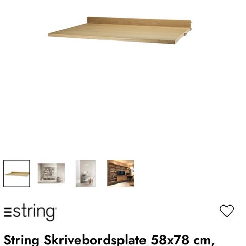 String skrivebordsplate 58x78 cm, hvit : KR 800