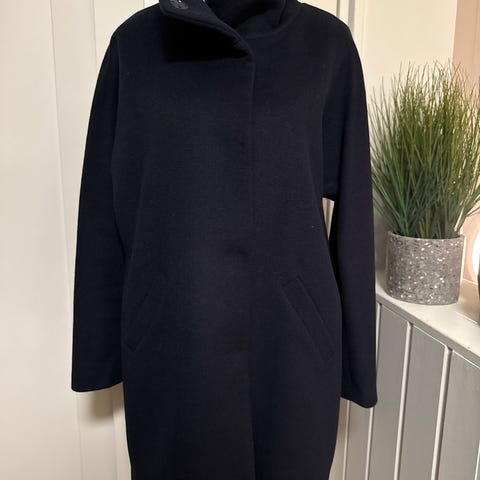 Størrelsen er som 38-40 i denne jakke-kåpen