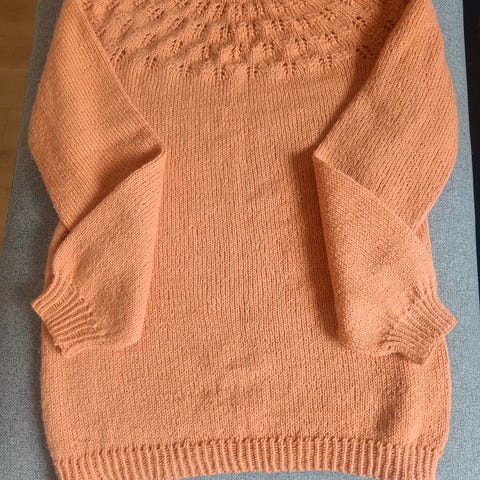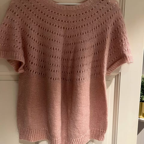 Hjemmestrikket topp i merino/ullblanding i en nydelig syrinfarge.
