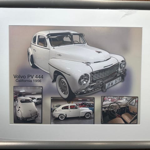 Bilde tegnet av Gøran Magnusson, innrammet i fin svart ramme med passepartout. Perfekt som veggpryd i garasjen eller Volvo verkstedet enten man har en PV, Amazon, Duett eller lignende.