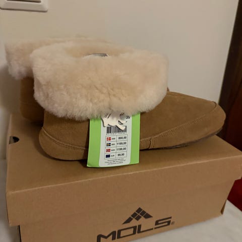 Tøfler fra Lune i str 36 i saueskinn. God såle med «anti-skli». Ubrukt.