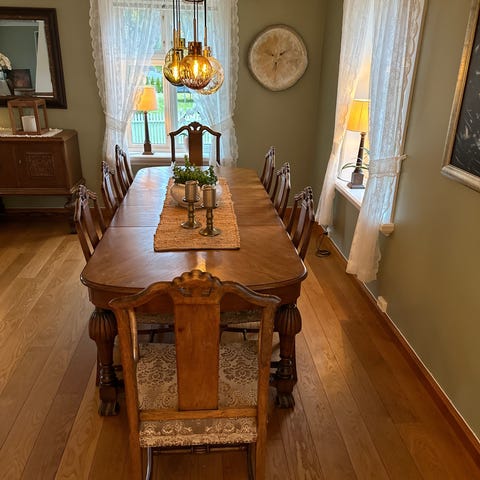 Flott 8 kantet bord med 4 stoler. Lite brukt.